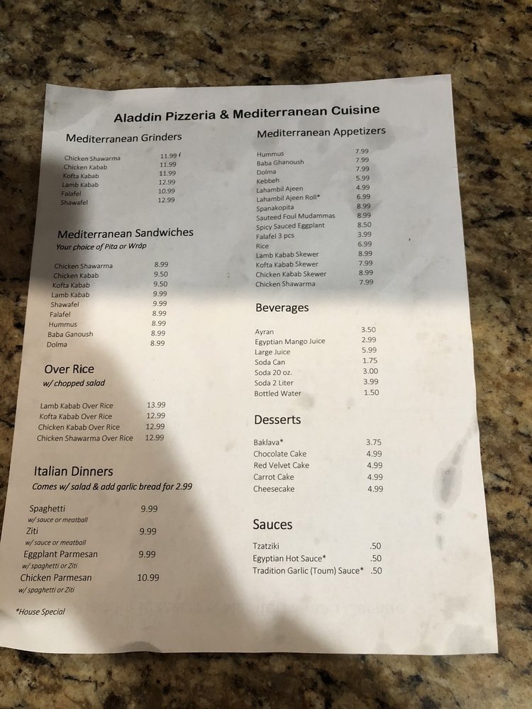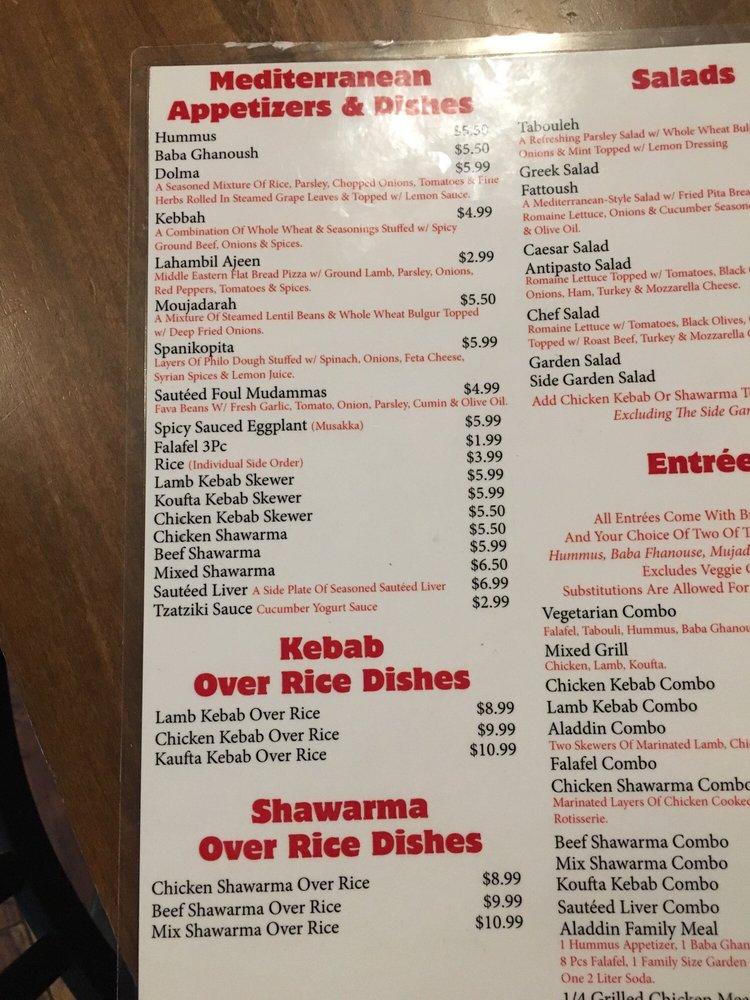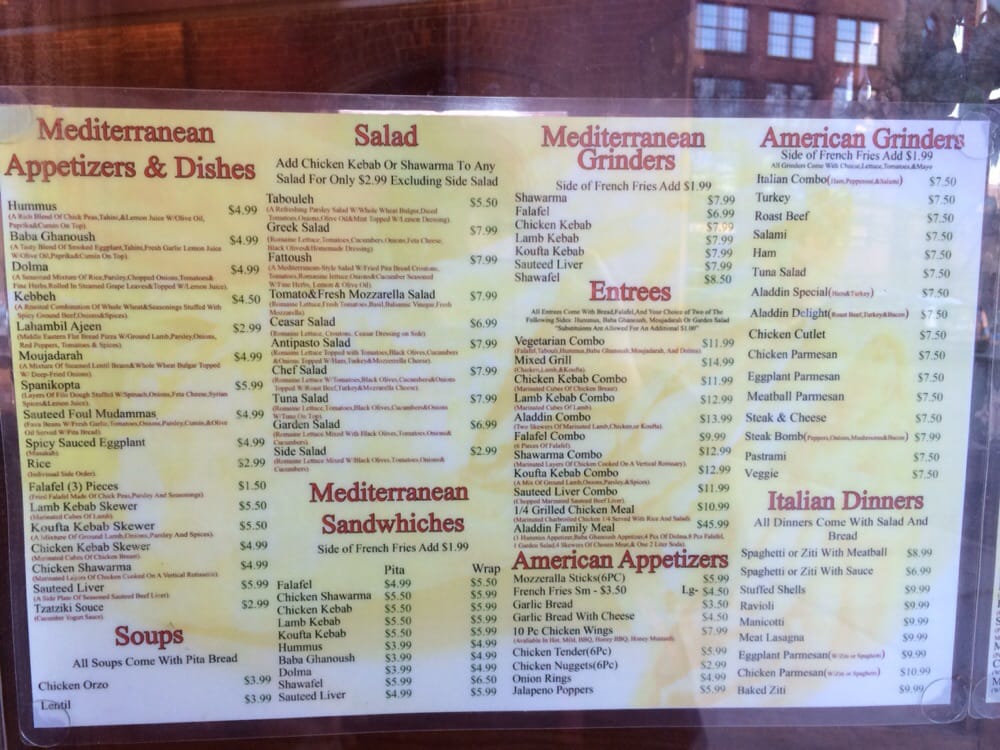 Aladdin Halal Menu